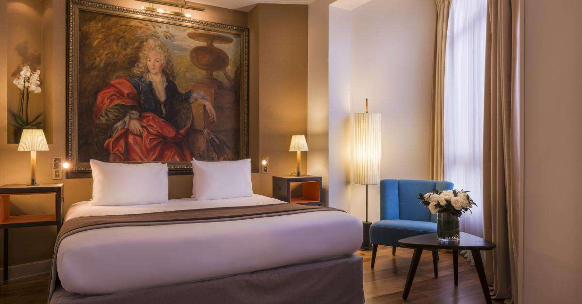 Hôtel Dame des Arts, situated in the vibrant Latin Quarter, presents a perfect blend of artistic flair and modern luxury. Here, you can find select rooms offering stunning views of the Eiffel Tower. As a boutique hotel, it emphasises personalised service and a culturally rich experience. This makes it a favourite among the hotels in Paris near Eiffel Tower. The artistic heritage of its neighbourhood inspires the decor. It features contemporary art pieces and elegant furnishings. The rooftop terrace provides a spectacular view of the city skyline, including the Eiffel Tower, located just a 20-minute walk away.